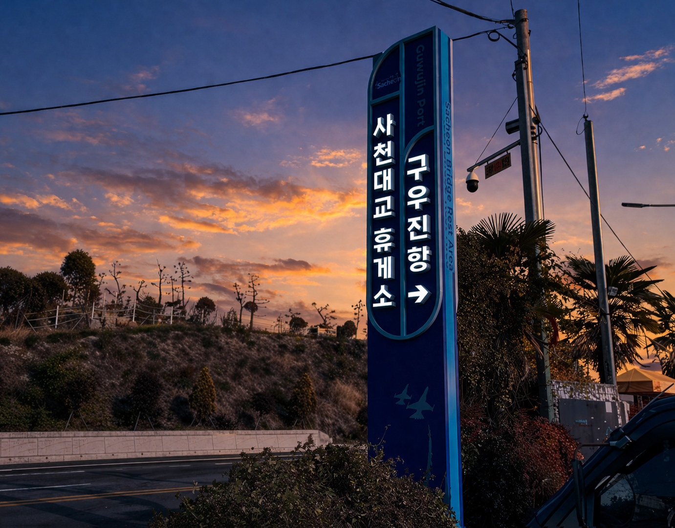 사천시 구우진항 풀사인 & 캠핑장 안내판 사이니지 디자인(2025)