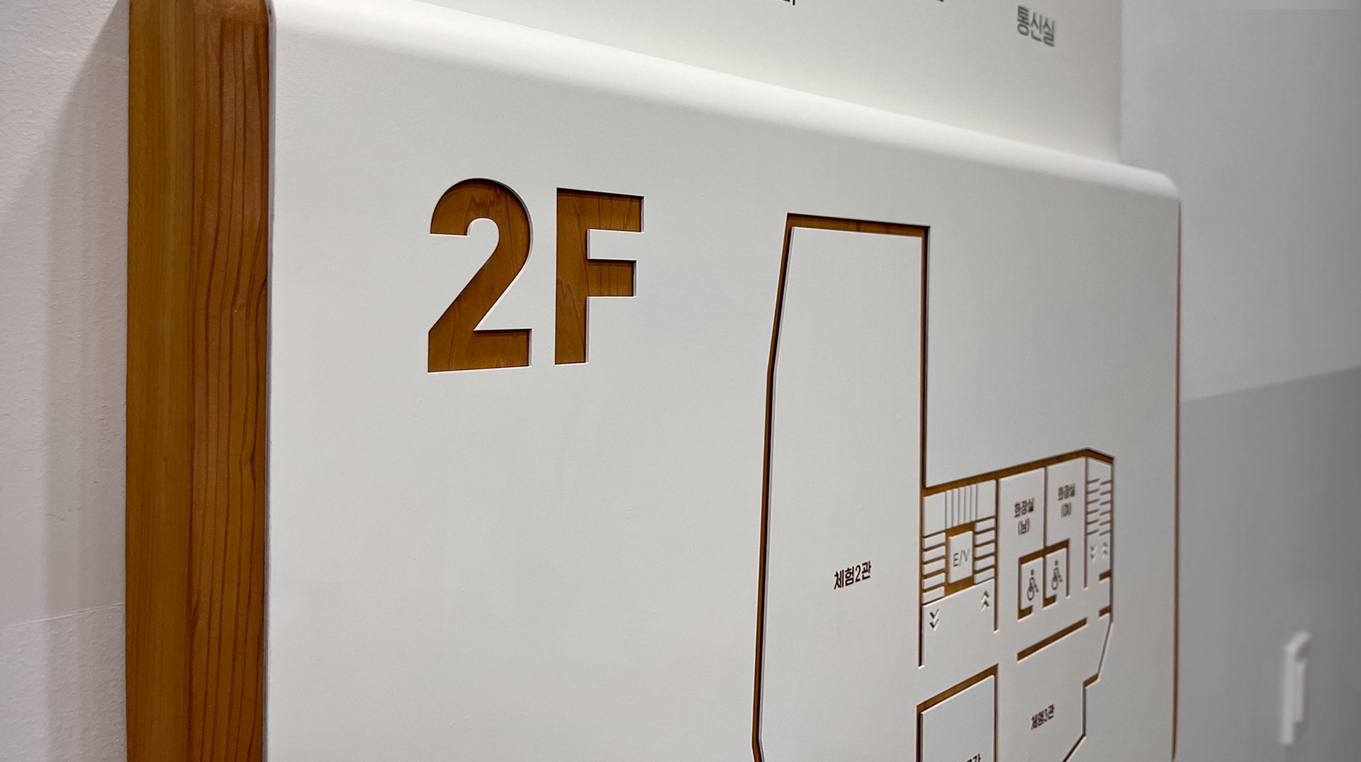 현재를 백색 금속, 과거를 나무로 제작하여 백색 금속에 타공되어 정보들이 나무로 표현이 되도록 했습니다.