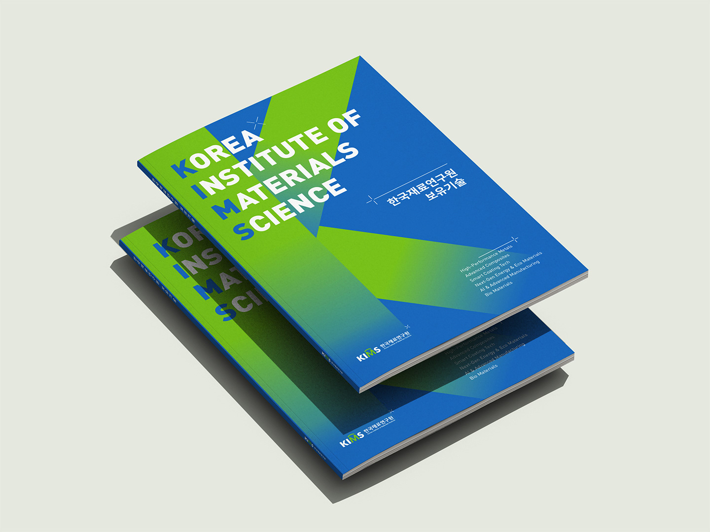 한국재료연구원의 이니셜 ‘KIMS’를 입체적인 그래픽으로 표현하였고, 연구 분야와 기술이 선으로 연결되는 구조를 통해 연구기관의 정체성과 미래 지향적인 이미지를 강조하였습니다.
