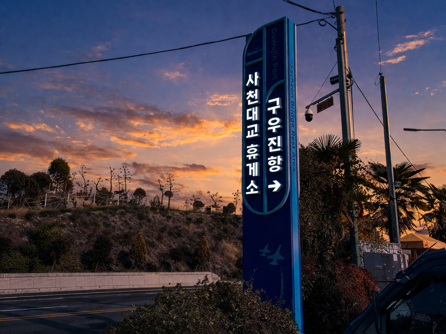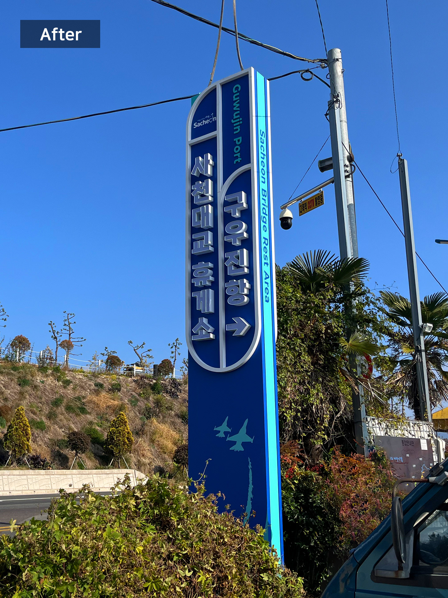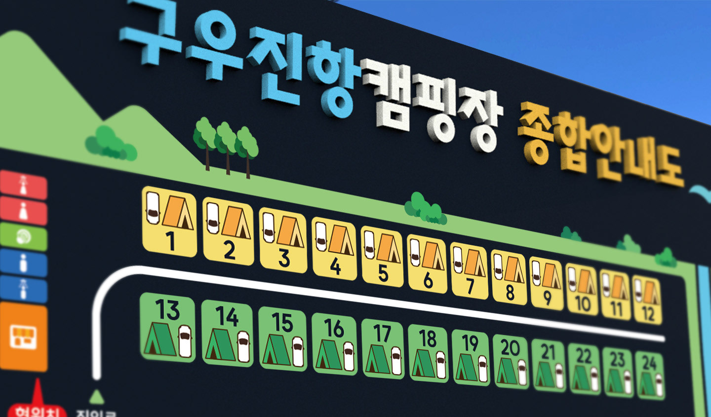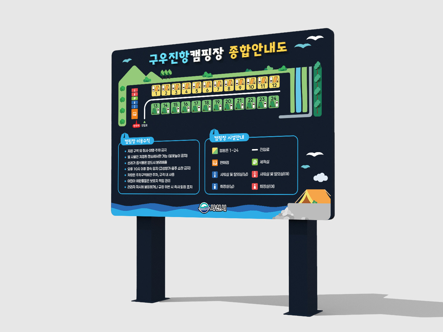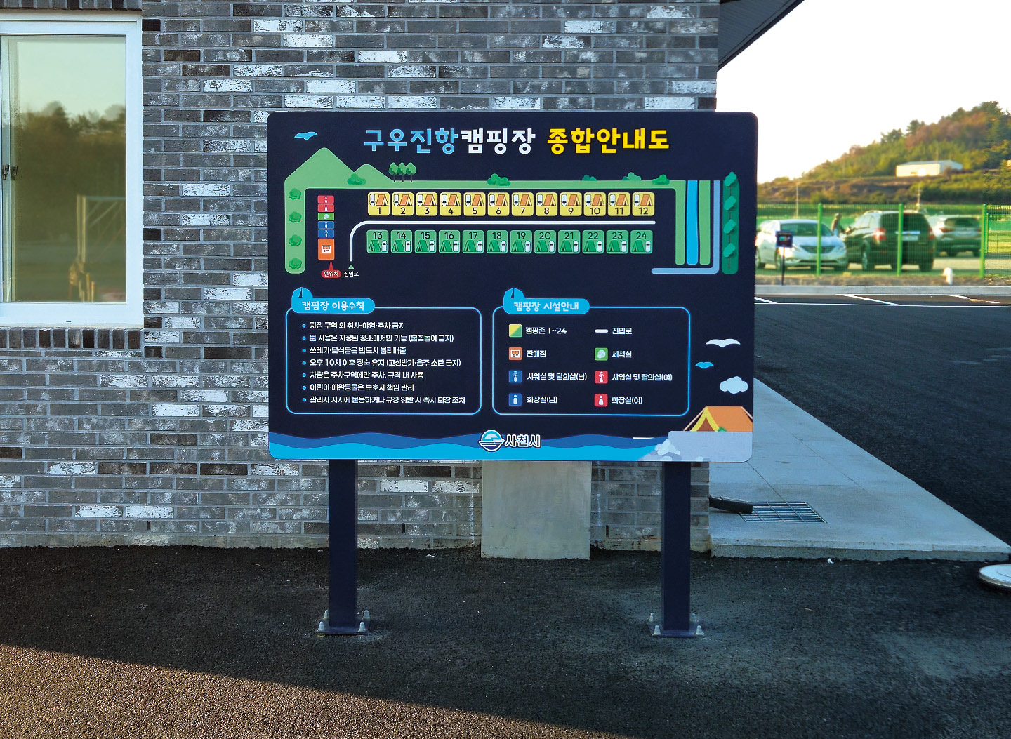 사천시 구우진항 풀사인 & 캠핑장 안내판 사이니지 디자인(2025)