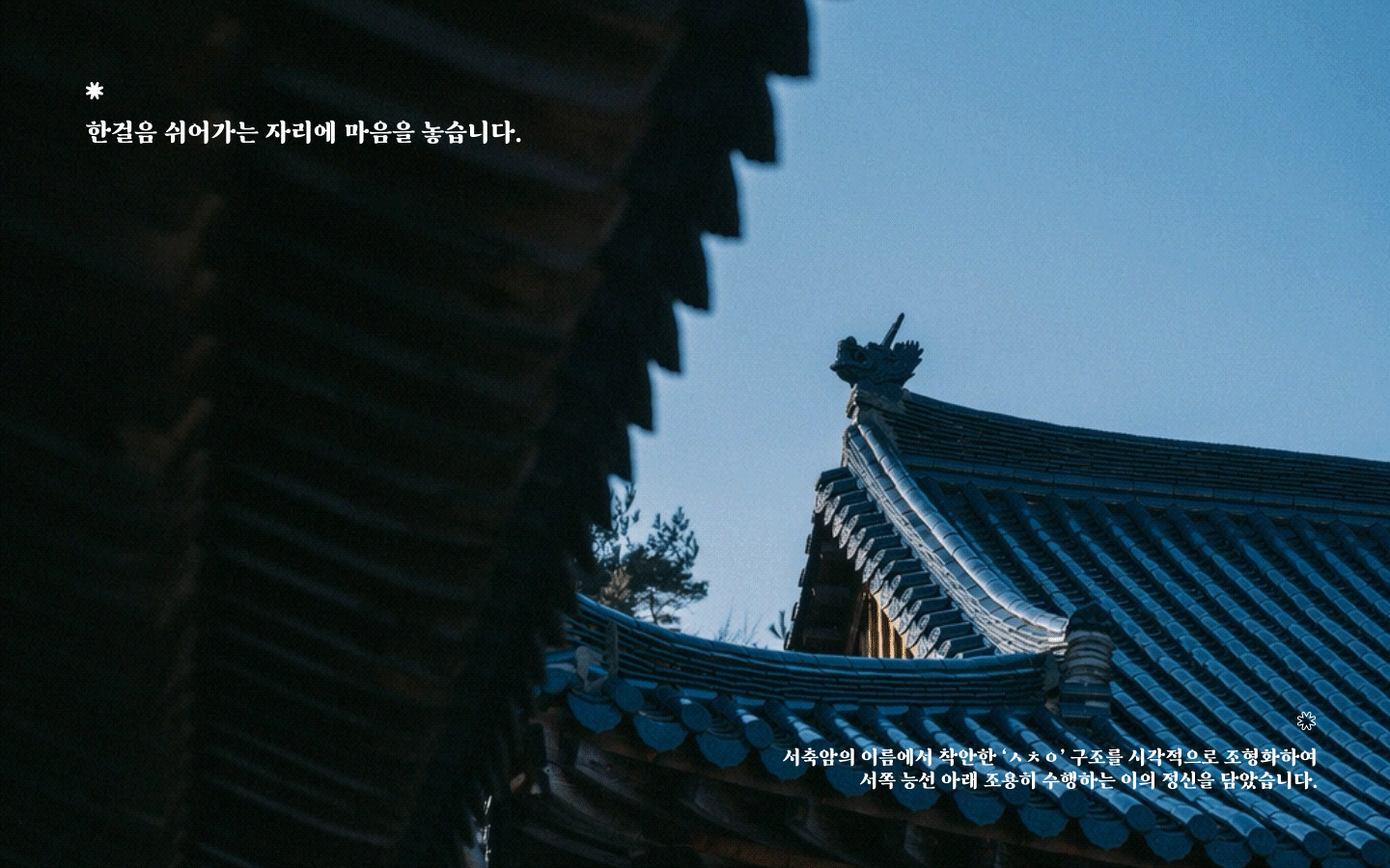 서축암의 브랜드 아이덴티티는 이름에서 착안한 ‘ㅅ·ㅊ·ㅇ’ 구조를 바탕으로 디자인되었습니다.