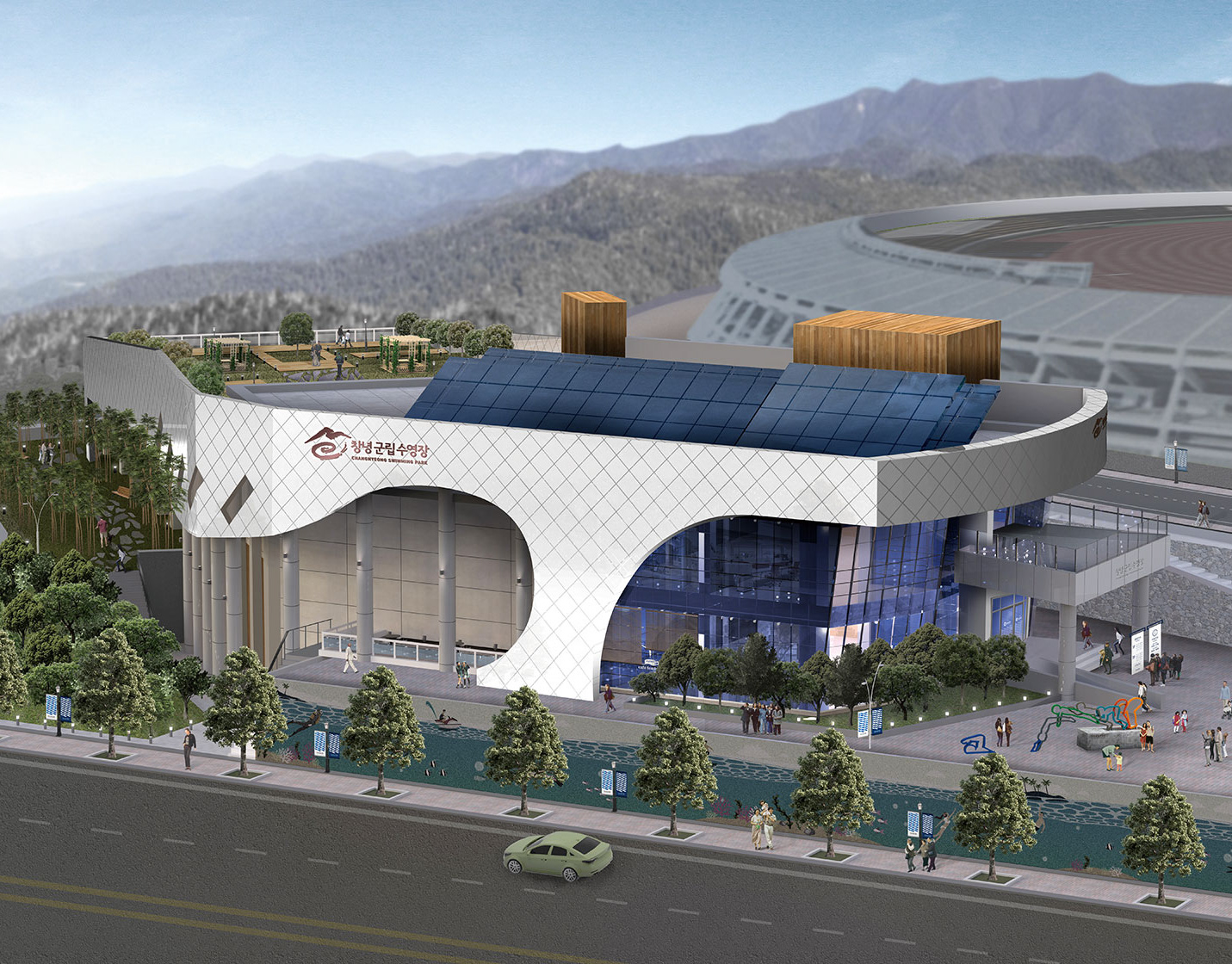 창녕군립수영장 외부 사이니지및 조형물 디자인 (2018)